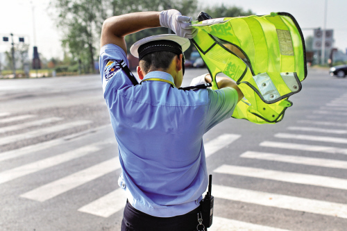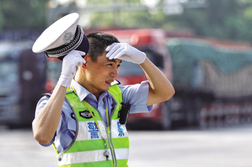 甩掉臉上的汗珠,他笑著說,夏天我們是“焦”警,是久經(jīng)“烤驗”的。